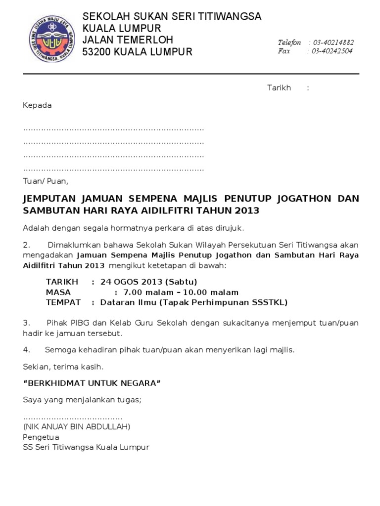 NO 323 JALAN MAHSURI 65 TAMAN MAHSURI 09400 PADANG SERAI KEDAH. For more information and source see on this link. Contoh Surat Jemputan Rasmi Kepada Vip James Horner Unofficial.